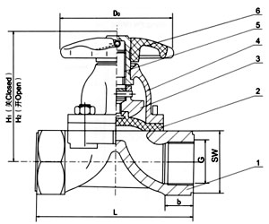 公稱(chēng)通徑 公稱(chēng)壓力 工作壓力 L SW b H1 H2 D0 質(zhì)量 DN G 8 1/4 1.6 1.6 50 20 - 60 66 45 0.6 10 3/8 50 24 - 45 0.7 15 1/2 65 38 8 84 92 50 0.8 20 3/4 85 40 12 93 103 50 1.1 25 1 110 48 18 106 120 66 1.9 32 1 1/4 120 58 18 137 156 96 3.3 40 1 1/2 140 69 18 142 163 96 4.2 50 2 165 85 20 167 192 96 5.8 65 2 1/2 1.0 203 60 20 190 225 165 9.5 80 3 254 105 32 206 246 230 16.2