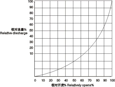 V型調(diào)節(jié)球閥的固有流量特性為近似等百分比特性,特性曲線下圖所示。