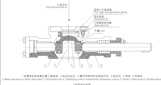 1、帶有V型切口的球芯。(見左圖)