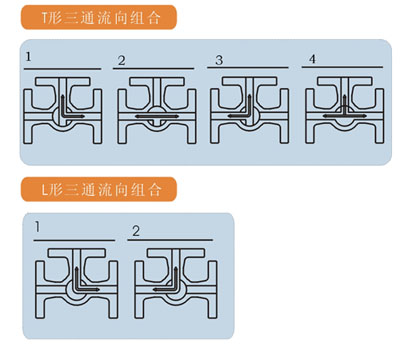 固定式三通球閥采用固定球,彈簧或碟簧加載的四面閥座結(jié)構(gòu),密封可靠,開關(guān)輕便。此結(jié)構(gòu)球體不同,有T形之分,其中T形可實(shí)現(xiàn)對介質(zhì)的分流或混流四種工況,根據(jù)需要可選擇其中兩種或三種進(jìn)行組合;L形可實(shí)現(xiàn)對介質(zhì)流向切換兩種工況。